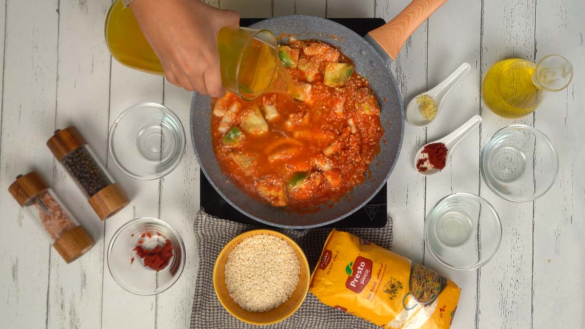 Ajoutez le riz rond Presto et mélangez afin que chaque grain s’enrobe de la sauce et des saveurs marines et végétales.